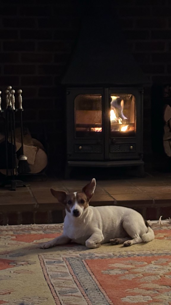 He looked up and just stared in that way that he does, the fire roaring behind him, the rain and the wind battering the house.