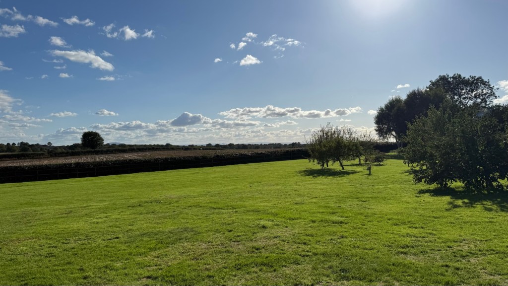 When I say garden, I mean a space of half an acre or so in front of me with a view that is unbroken until the Shropshire hills get in the way.