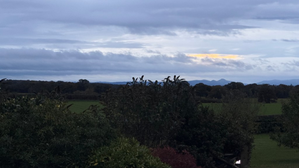 Not quite 5pm on a Sunday evening and the wind, rain and gloom are encroaching upon the last vestiges of light over the hills.