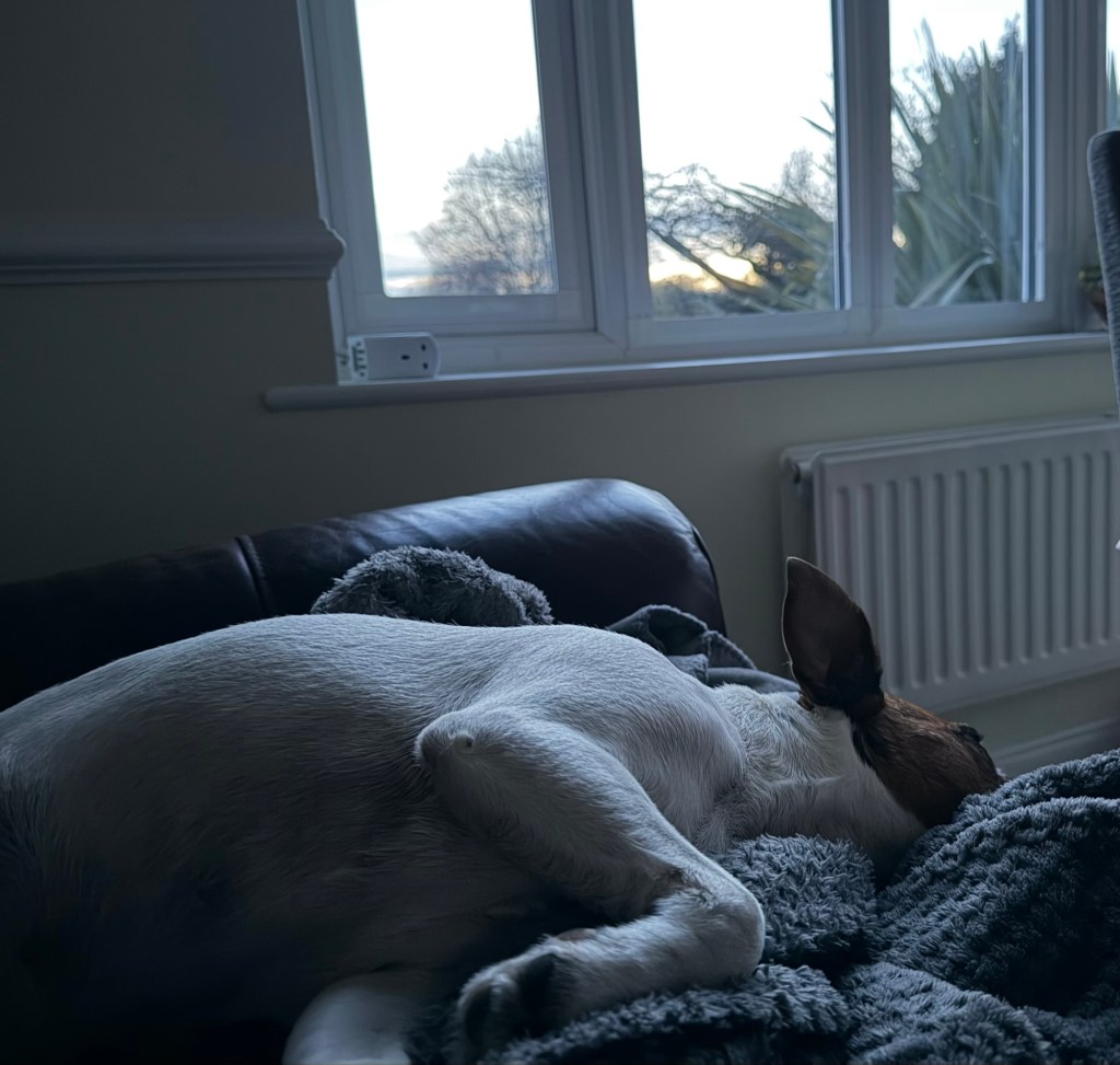 I’ve just woken up after a short doze on one of the sofas, Cairo is snuggled up against me and Milo has colonised most of another sofa across the room, quite a feat considering how small he really is.